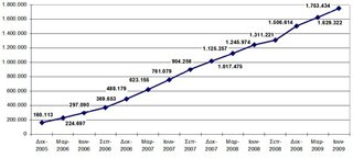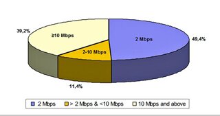 Ο αριθμός των ευρυζωνικών συνδέσεων στο τέλος του Ιουνίου έφτασαν τις 1.753.434 (διείσδυση 15,63% στον πληθυσμό), έναντι 1.629.322 (διείσδυση 14,5%) τον Μάρτιο του 2009.