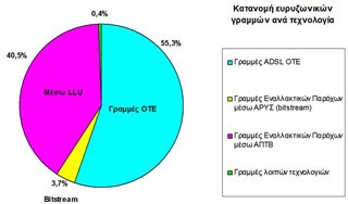 Σημειώνεται ότι στα μέσα του 2009 το 40,6% των ευρυζωνικών γραμμών παρεχόταν μέσω ΑΠΤΒ. Οι γραμμές ΑΡΥΣ (χονδρικής) εξακολουθούν να μειώνονται, γεγονός που επιβεβαιώνει την τάση των εναλλακτικών παρόχων για μεταφορά της συνδρομητικής τους βάσης από Χονδρική Ευρυζωνική Πρόσβαση σε Αδεσμοποίητη Πρόσβαση στον Τοπικό Βρόχο και λιγότερο για την προσέλκυση καινούριων συνδρομητών τοπικού βρόχου.