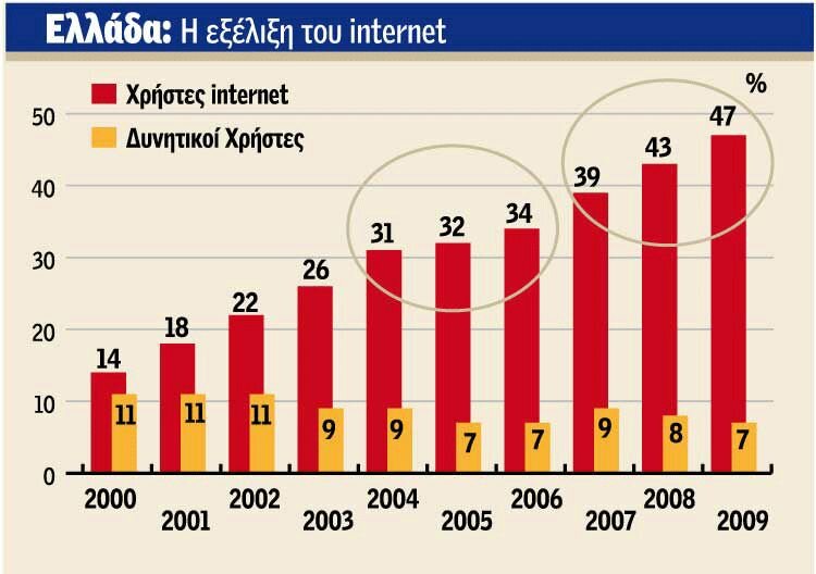 To αποτέλεσμα είναι στο σύνολο του πληθυσμού το ποσοστό διείσδυσης να διαμορφωθεί στις αρχές του 2009 στο 47% έναντι 43% που ήταν το φθινόπωρο του 2008.