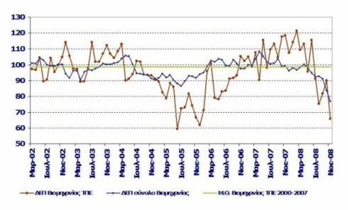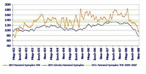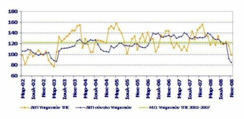 Τα στοιχεία αφορούν τους κλάδους της Βιομηχανίας και του Λιανικού Εμπορίου, όσο και τις Υπηρεσίες στο χώρο της τεχνολογίας κατά την περίοδο Νοεμβρίου 2008.