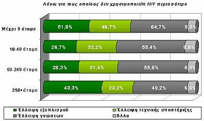 Σημαντικό είναι, επίσης, ότι στους μικρούς ΟΤΑ η έλλειψη γνώσεων, αλλά και εξοπλισμού είναι από τους σημαντικότερους παράγοντες μη χρήσης υπολογιστών. Η πλειονότητα πάντως των αποκρινόμενων στη σχετική έρευνα (86,8%) φαίνεται να συμφωνεί ότι η χρήση ΤΠΕ είναι απαραίτητη για την τέλεση των καθηκόντων τους.